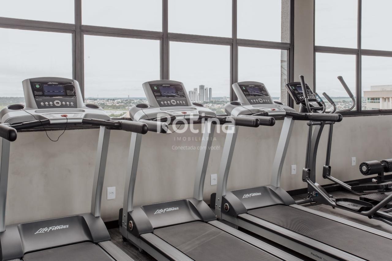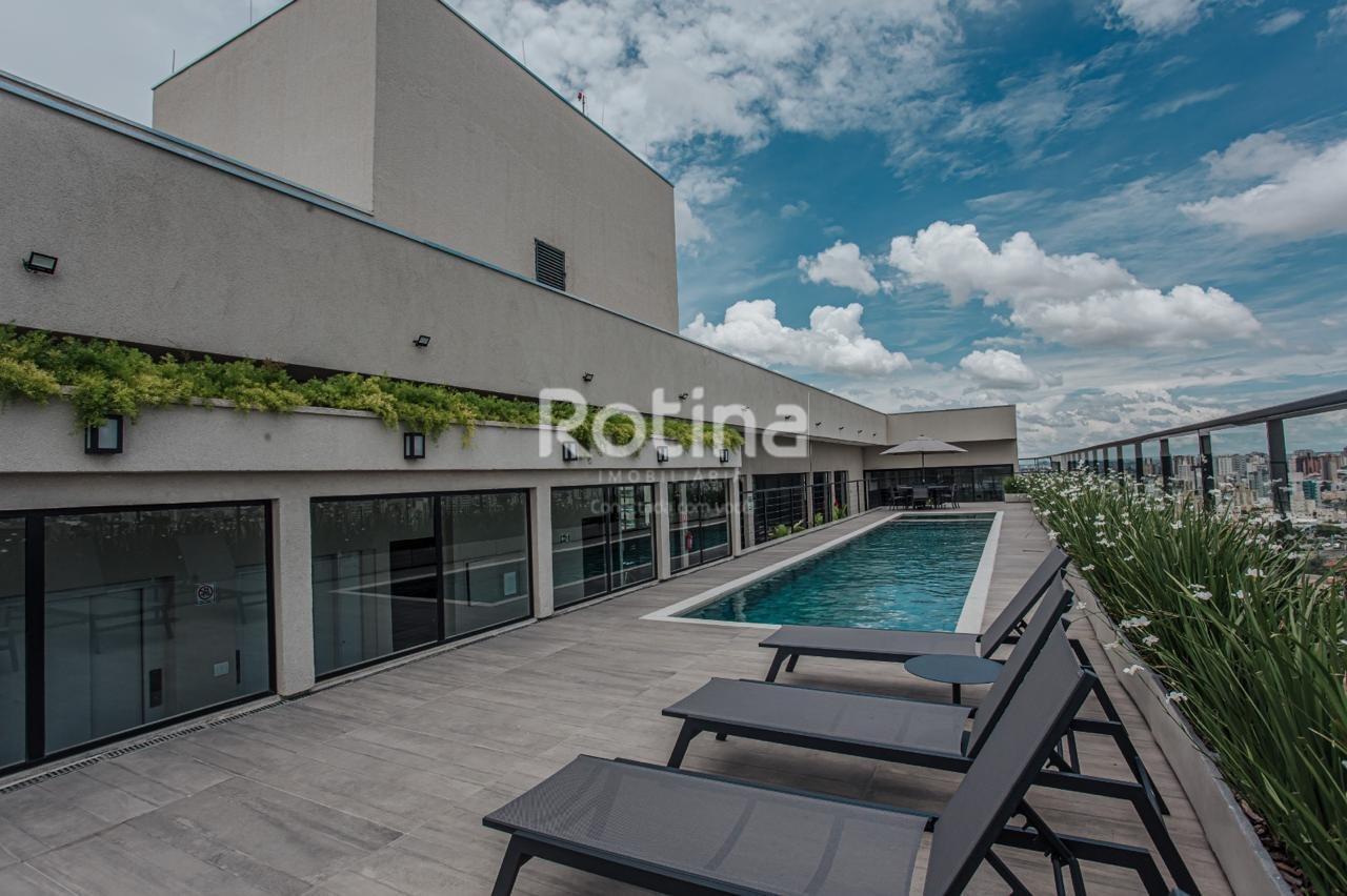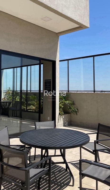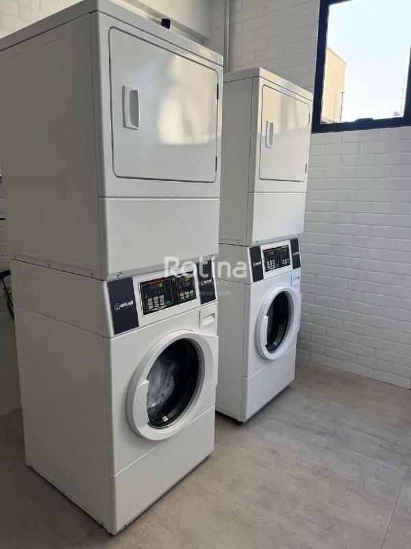 Studio residencial mobiliado com 27 m², localizado no bairro Santa Mônica, em Uberlândia. O imóvel possui quarto integrado, sala, banheiro e varanda, além de elevador no edifício. Conta com ar-condicionado, armários, box no banheiro, lavanderia e espaço gourmet. O condomínio, com taxa aproximada de R$ 350,00, oferece portaria e segurança 24 horas, academia, piscina e portão eletrônico. Aceita financiamento.