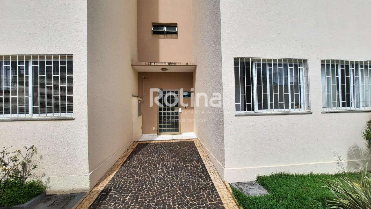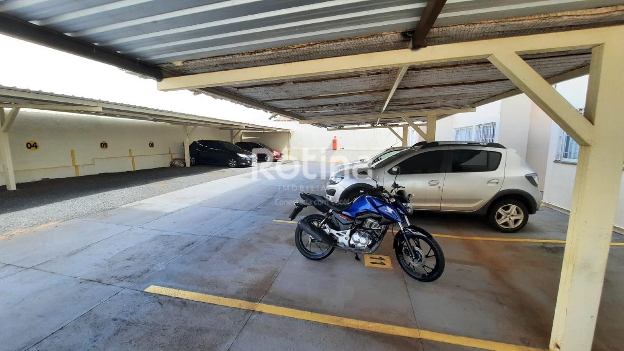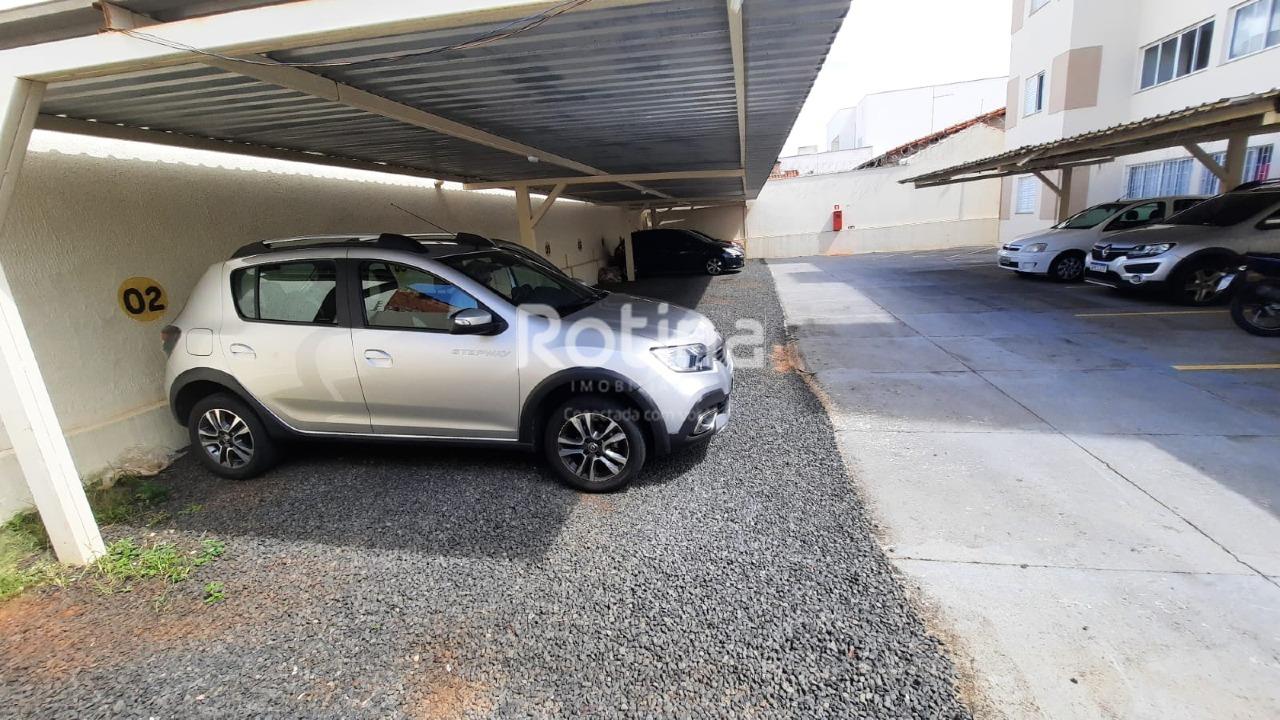 Apartamento em boa localização, próximo ao Parque do Sabiá, em Uberlândia. Possui sala para dois ambientes com piso em porcelanato, 2 quartos também com porcelanato e armários embutidos, além de banheiro social com box em blindex. A cozinha conta com armários planejados e o imóvel dispõe de área de serviço. Conta ainda com 1 vaga de garagem coberta, portão eletrônico e cerca elétrica.