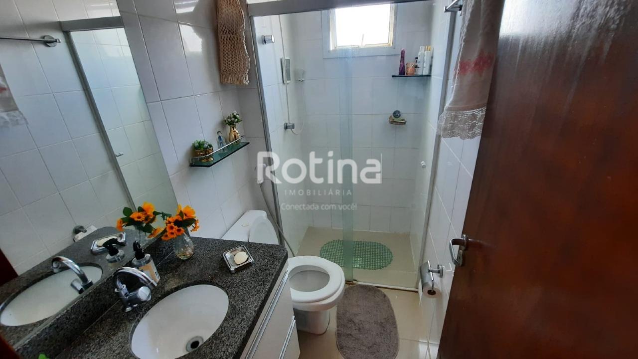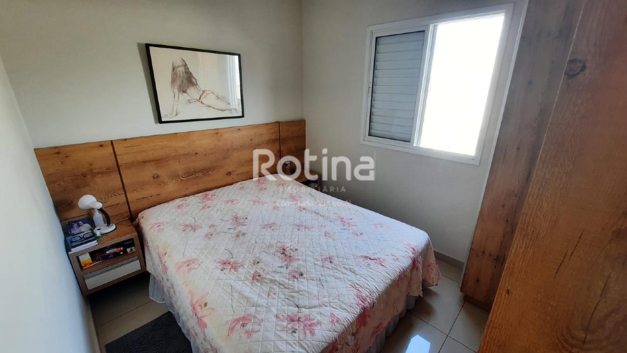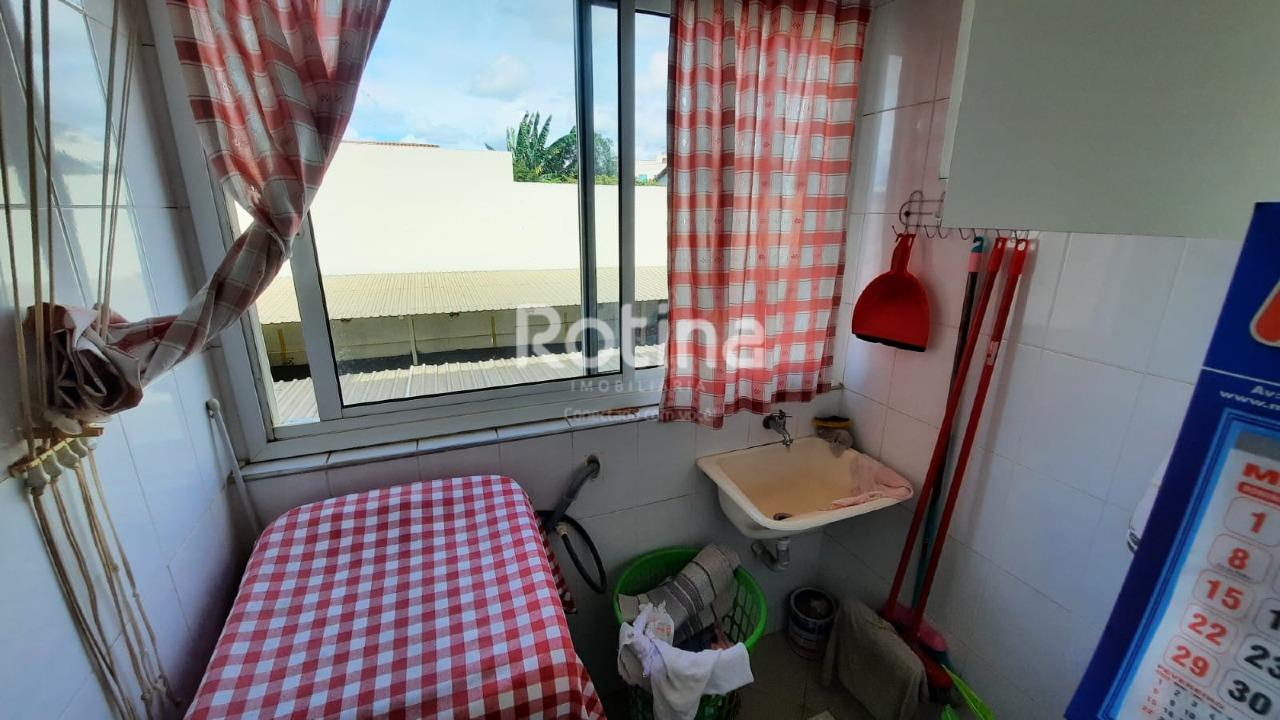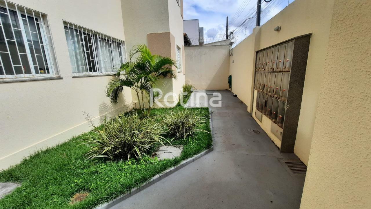 Apartamento em boa localização, próximo ao Parque do Sabiá, em Uberlândia. Possui sala para dois ambientes com piso em porcelanato, 2 quartos também com porcelanato e armários embutidos, além de banheiro social com box em blindex. A cozinha conta com armários planejados e o imóvel dispõe de área de serviço. Conta ainda com 1 vaga de garagem coberta, portão eletrônico e cerca elétrica.