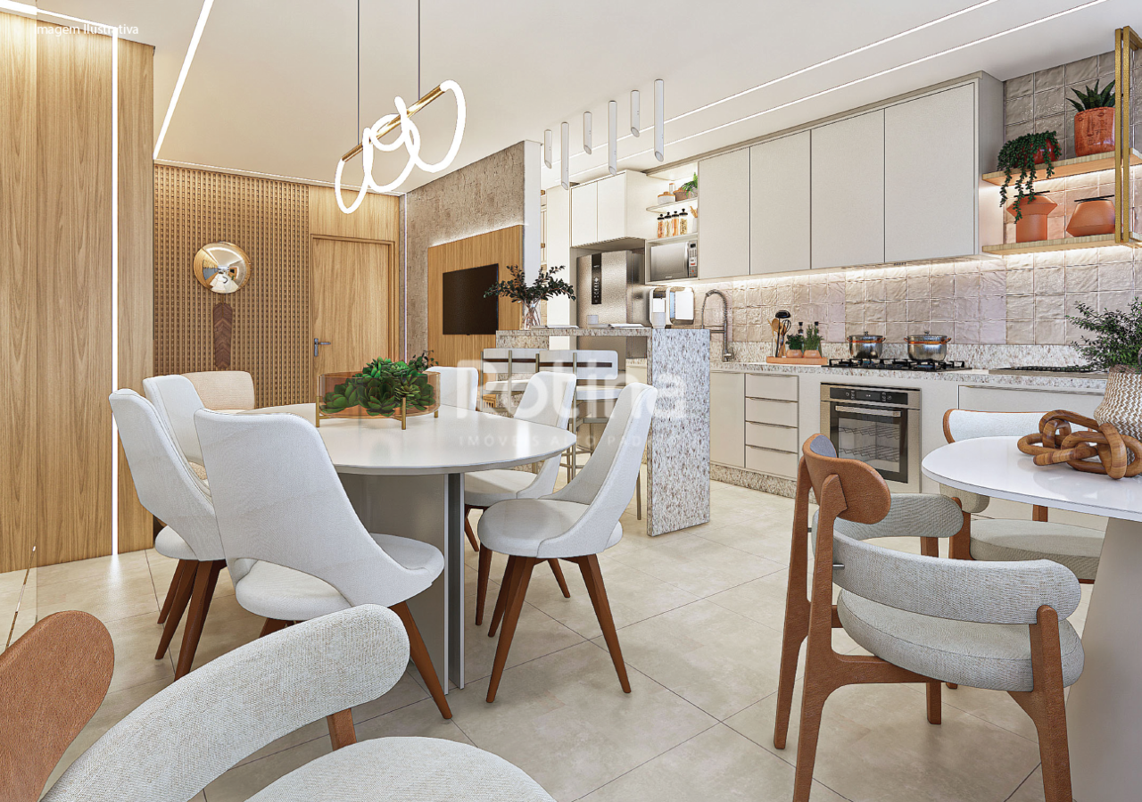 Apartamentos de 01 a 03 quartos, prédio com 04 opções de plantas, 32 unidades, sendo 04 apartamentos por andar, 02 coberturas, elevador, Estrutura para ar condicionado, salão de festas com churrasqueira a carvão, espaço para academia no 10º andar, Vista espetacular, acabamento de alto padrão, garagens no 1º andar com 01 e 02 vagas.