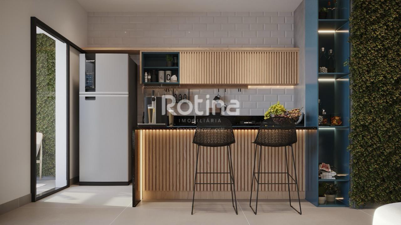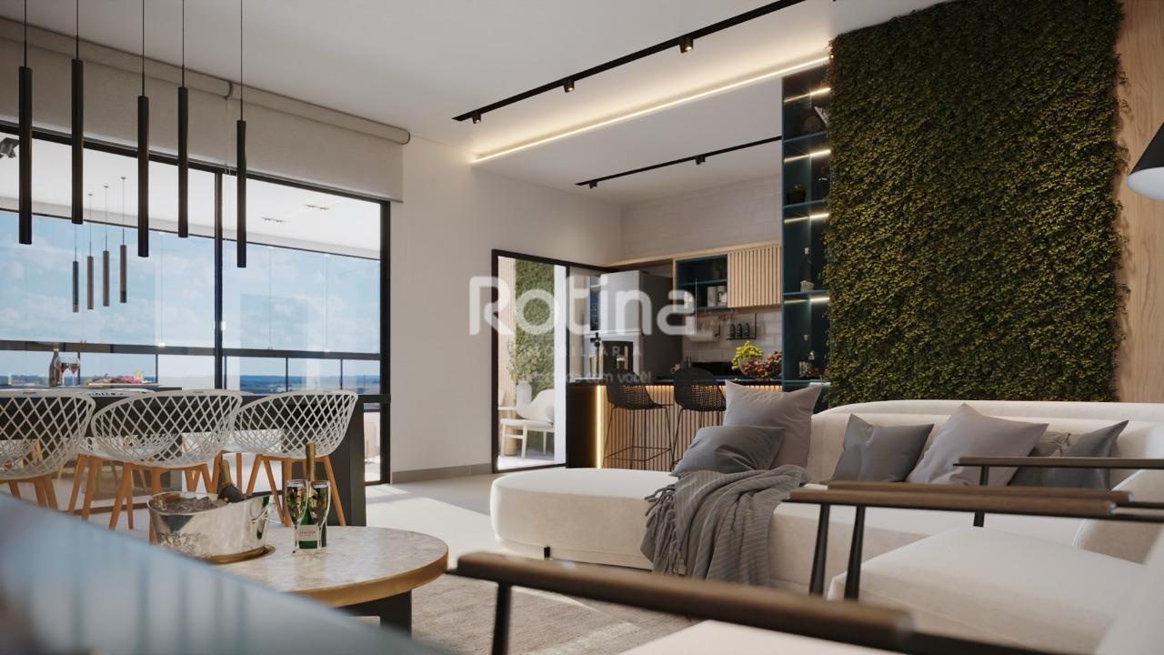 Apartamento pronto para morar no bairro Santa Mônica, em Uberlândia, com acabamento de alto padrão e ambientes bem planejados. Possui hall office de entrada, sala ampla em dois ambientes, varanda gourmet e lavabo. Conta com 3 quartos, sendo 1 suíte e 1 semi-suíte, banheiro social e hall de circulação com espaço para roupeiro. A cozinha é integrada ao living e a lavanderia possui acesso à varanda. O condomínio dispõe de áreas comuns decoradas, piscina com deck, academia, salão de festas com espaço para home office, espaço pet, espaço grill, playground, lounge bar e bicicletário, além de elevadores inteligentes e alvenaria convencional.