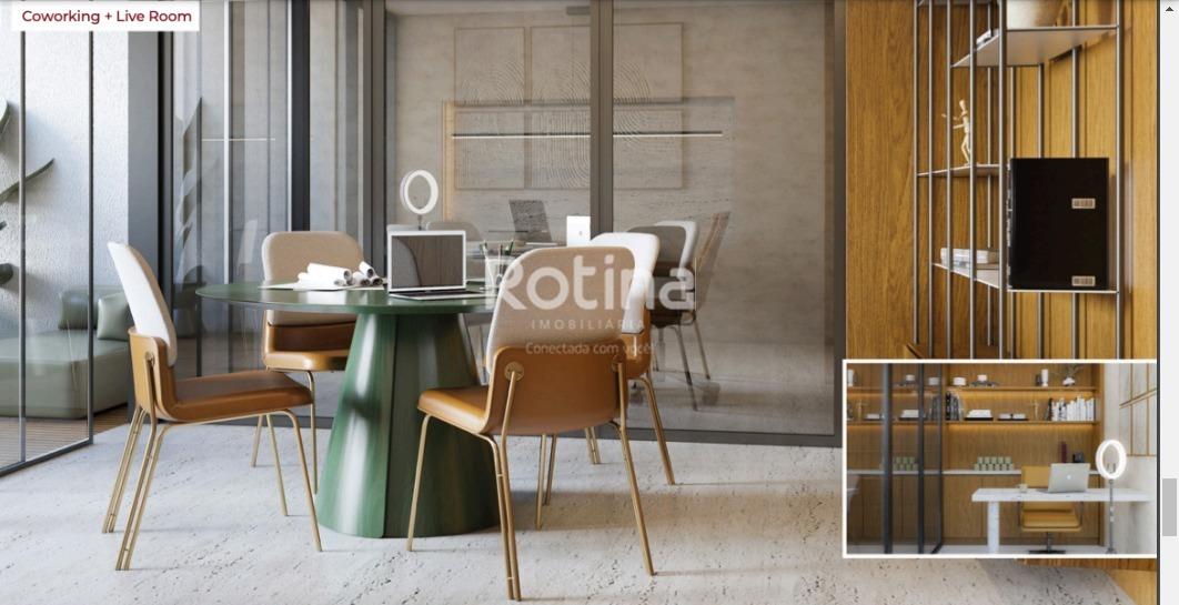 Prédio em construção, com entrega prevista para novembro de 2027, em Uberlândia. O condomínio contará com área de lazer completa: piscina aquecida, academia, salão de festas, coworking, portaria 24 horas, praça com paisagismo, playground, sala de massagem, salão de jogos, bicicletário e espaço pet. O apartamento terá 3 suítes, sala em dois ambientes com sacada, banheiro social, cozinha e área de serviço separada com banheiro de apoio. Piso em porcelanato e 2 vagas de garagem soltas.