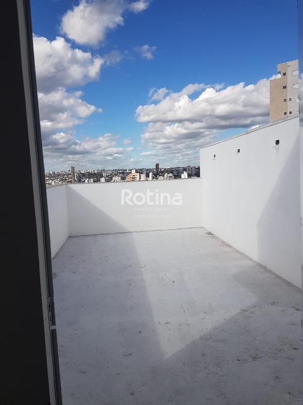 Cobertura no bairro Tubalina com dois pavimentos que proporcionam mais espaço e privacidade. No primeiro andar, são dois quartos, sala em dois ambientes com sacada, banheiro social, cozinha e área de serviço. O piso superior oferece uma sala adicional, que pode ser adaptada como terceiro quarto ou escritório, além de ampla área descoberta, ideal para criar um ambiente de lazer. Conta com uma vaga de garagem e acabamento em porcelanato.