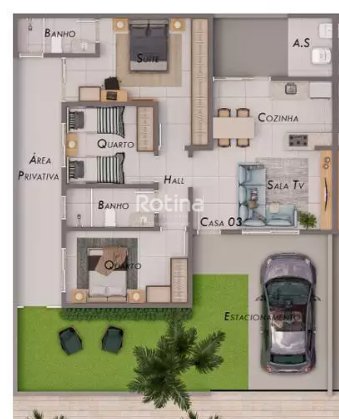 Casa confortável e bem planejada, com sala em dois ambientes e pé-direito alto, proporcionando amplitude e boa iluminação. A cozinha conta com bancadas funcionais, e o imóvel oferece três quartos, sendo uma suíte, além de banheiro social e área de serviço coberta e independente. Possui armários planejados, luminárias instaladas e preparação para aquecimento solar nos chuveiros. Na área externa, conta com jardim gramado, portão eletrônico, cerca de proteção e estacionamento para até dois carros.