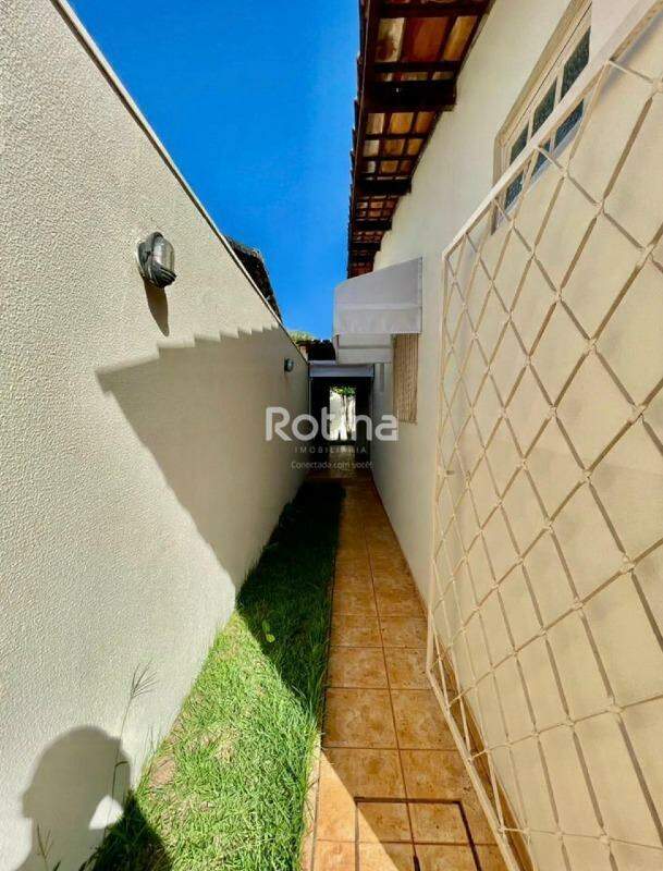 Casa no bairro Santa Mônica, com 300m² de terreno e 125m² de área construída, composta por sala de visitas em 2 ambientes com detalhes em gesso, 3 quartos sendo 2 suítes com armários, box, espelho e armário na pia, além de banheiro social também completo com box, espelho e armário. Possui cozinha montada com armários, área de serviço, quintal gramado com ducha e 1 vagas de garagem com portão eletrônico. Localizada próxima ao Hospital Madrecor, farmácias e supermercados, oferecendo praticidade no dia a dia.