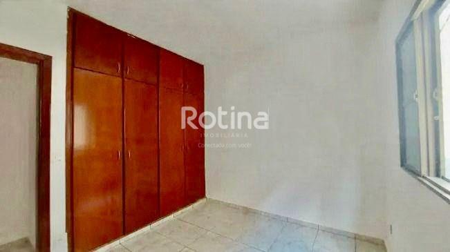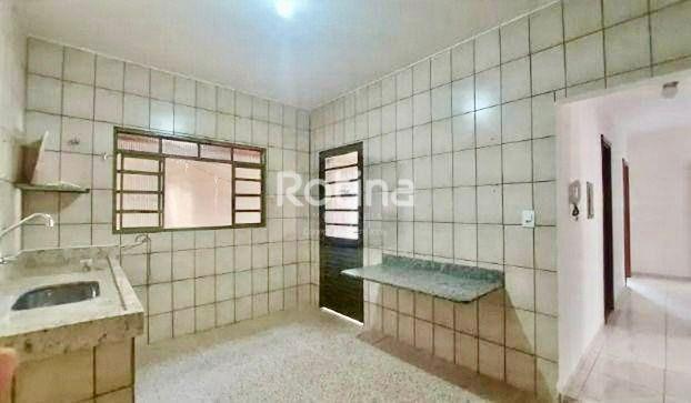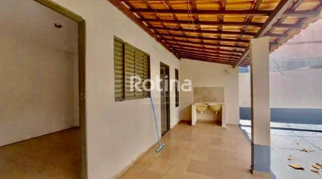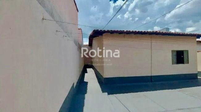 Casa à venda em boa localização no bairro Santa Mônica, com sala de estar em 2 ambientes, sala de jantar, cozinha revestida em cerâmica até o teto, com armários sob a pia e bancada de jantar em granito, além de lavanderia também azulejada até o teto com tanque e lavabo. São 3 quartos, sendo 1 suíte e 2 com armários embutidos, além de corredores com piso em cerâmica e área cimentada com pintura nova. Nos fundos, dispõe de edícula com banheiro externo e mais uma suíte, também com tanque, garagem para 2 carros e estacionamento para mais 1 veículo.