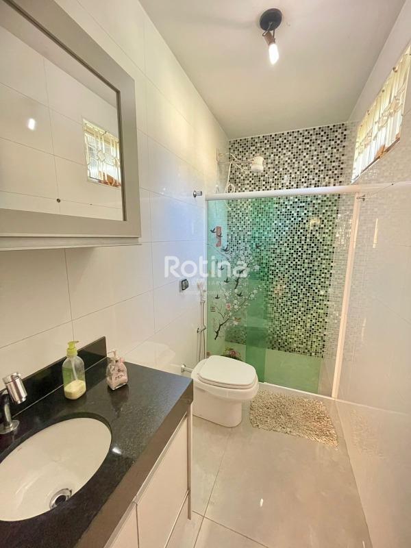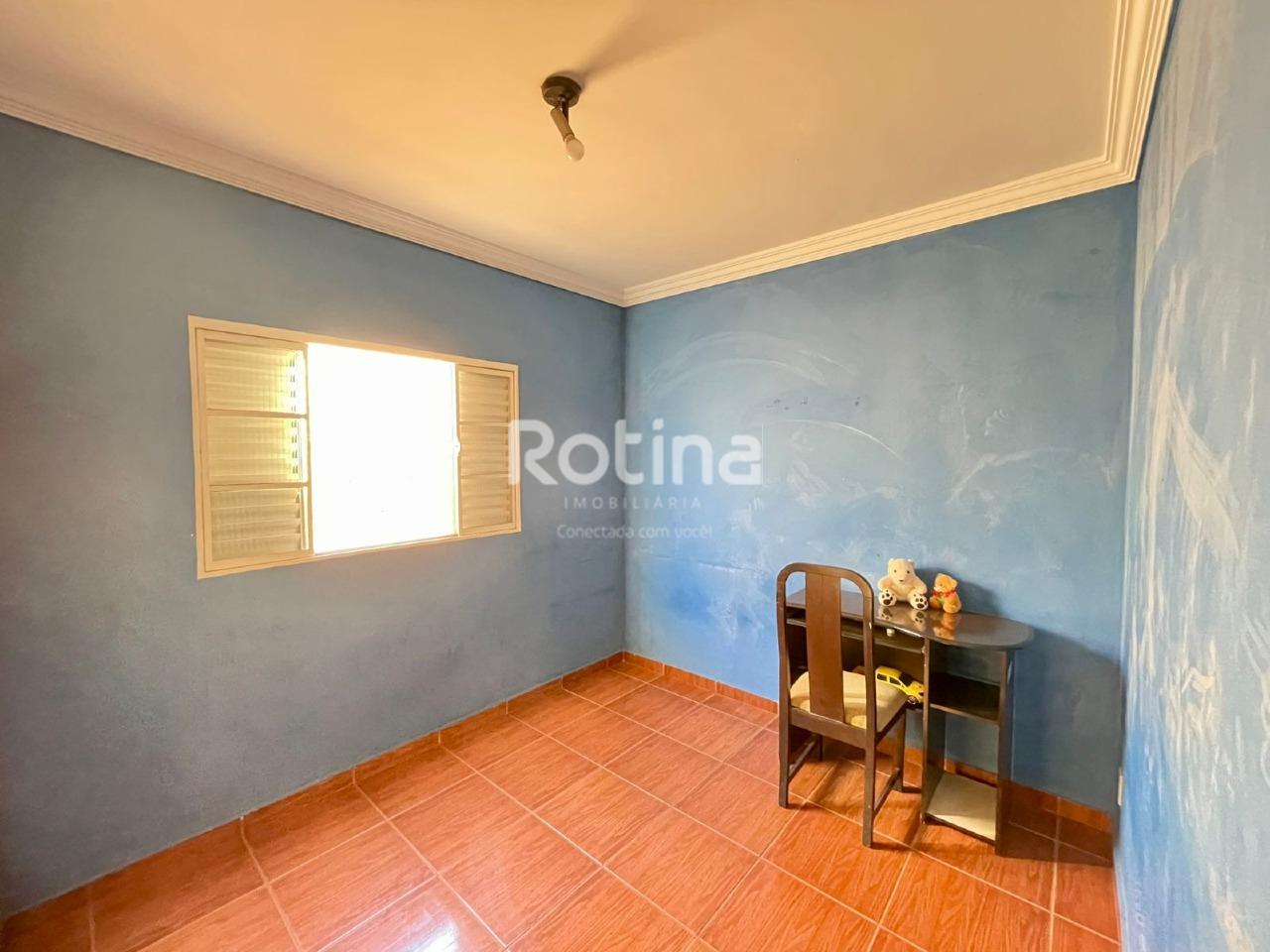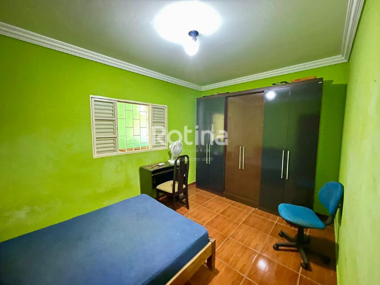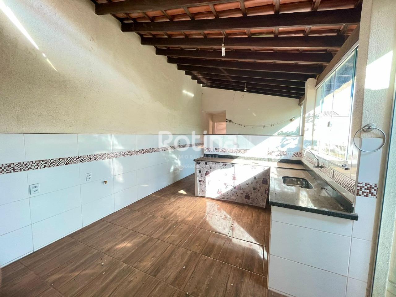 Casa de 204,65m² em ótima localização no bairro Santa Mônica, sendo sala em 2 ambientes, cozinha com armário conjugado com sala de jantar, 3 quartos sendo 1 suíte, banheiro social e banheiro da suíte com armários e box blindex, área de serviço, quarto e banheiro de serviço, varanda gourmet com pia e bancada em granito, amplo quintal, 4 vagas de garagem cobertas.
