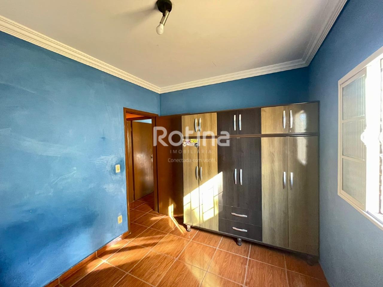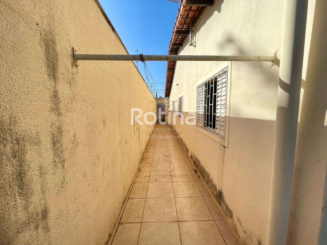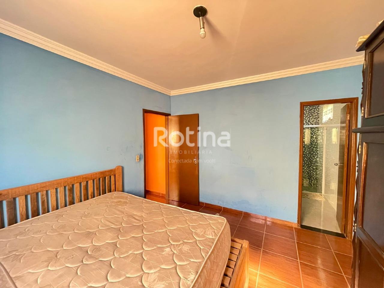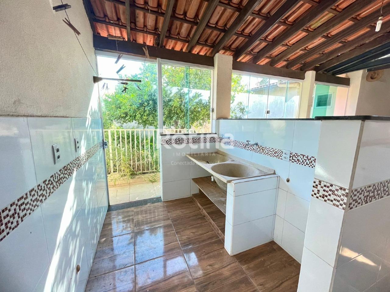 Casa de 204,65m² em ótima localização no bairro Santa Mônica, sendo sala em 2 ambientes, cozinha com armário conjugado com sala de jantar, 3 quartos sendo 1 suíte, banheiro social e banheiro da suíte com armários e box blindex, área de serviço, quarto e banheiro de serviço, varanda gourmet com pia e bancada em granito, amplo quintal, 4 vagas de garagem cobertas.
