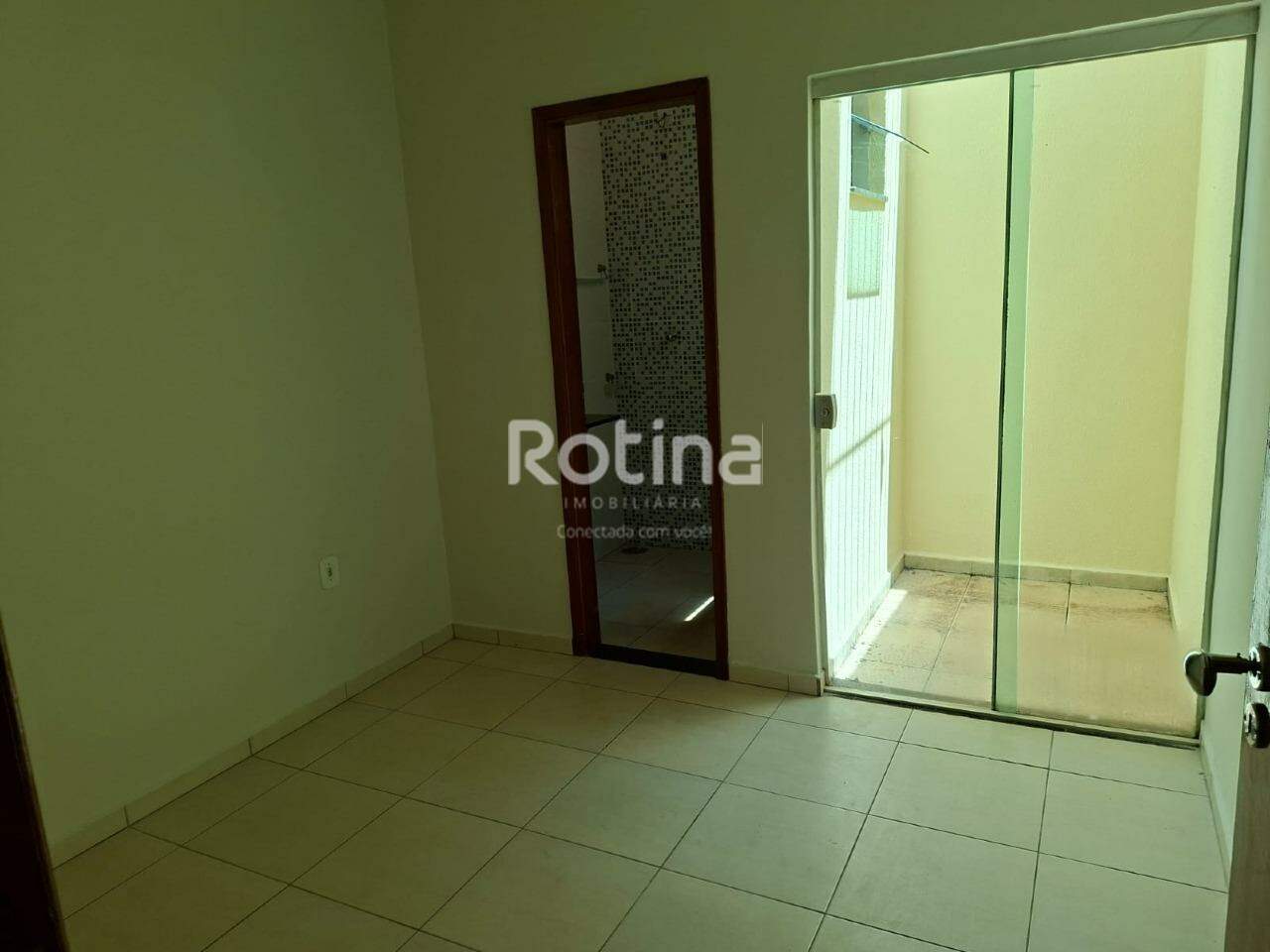 Excelente casa em condomínio fechado, próximo a UFU, com 3 quartos sendo 1 suíte, todos com armários, sala ampla com jardim de inverno, cozinha planejada, banheiro social, área de serviço independente e varanda com churrasqueira e garagem para 2 carros. Condomínio conta com piscina, playground, área de churrasqueira, câmeras de segurança, cerca elétrica e portão eletrônico.