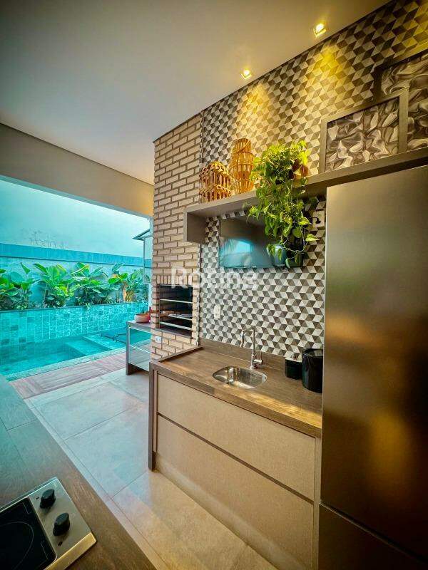 Casa com 330m² de área construída em terreno de 372m², projetada para oferecer conforto e sofisticação em cada detalhe. O hall de entrada possui pé-direito de 5 metros, enquanto o restante da casa tem 4 metros de altura, garantindo amplitude, iluminação e ventilação natural. O acabamento é de alto padrão, com pisos e revestimentos Portobello em todos os ambientes. No pavimento superior, há 1 suíte master com closet, e no térreo, uma segunda suíte master também com closet, além de uma terceira suíte. Um escritório pode ser facilmente convertido em uma quarta suíte, totalizando 4 dormitórios e 6 banheiros bem distribuídos. Todos os quartos contam com ar-condicionado e móveis planejados. A área social é integrada, com sala ampla e cozinha moderna, conectadas à área gourmet externa, que dispõe de piscina aquecida e espaço para lazer. O projeto luminotécnico em LED e o paisagismo completo valorizam o visual contemporâneo da residência, que combina conforto, elegância e funcionalidade em um único imóvel.