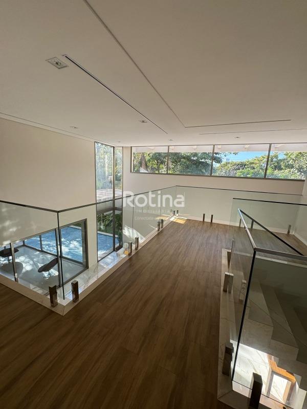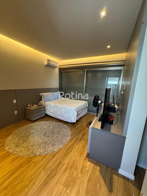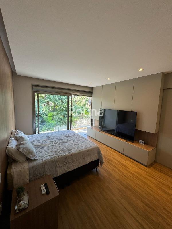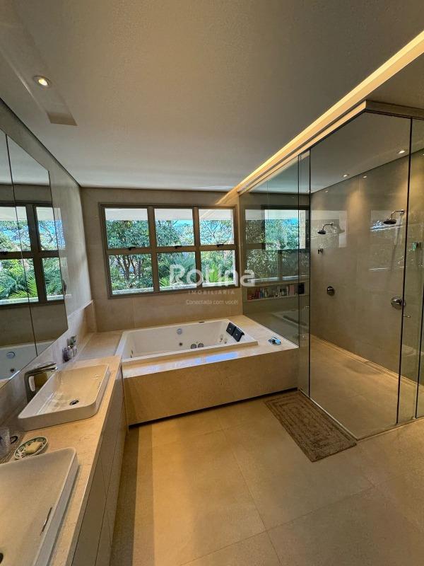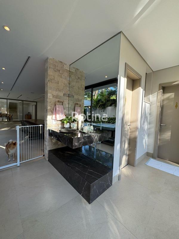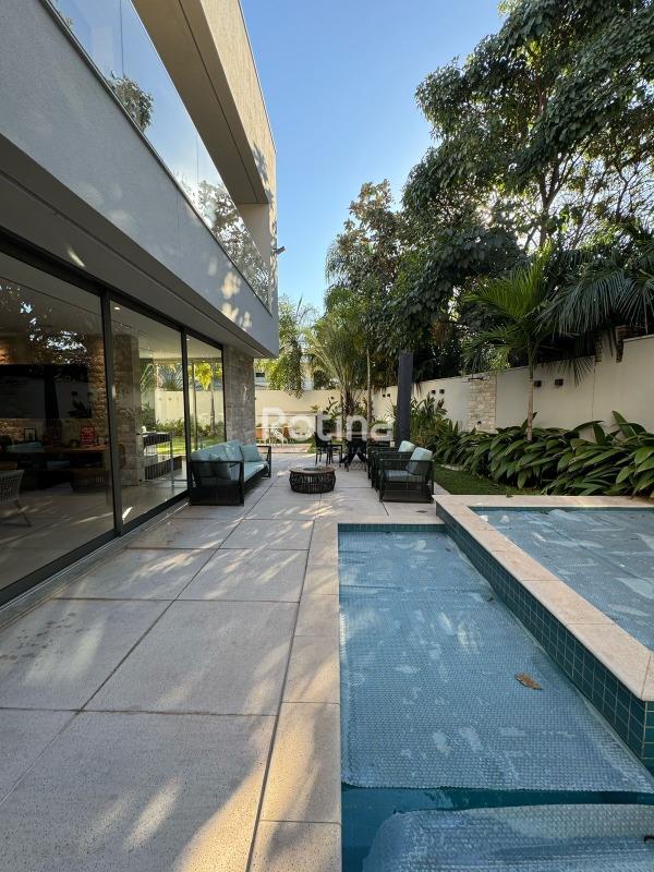 Residência de alto padrão à venda no Condomínio Villa dos Ipês, o mais exclusivo de Uberlândia. Imponente casa de esquina que reúne sofisticação, conforto e tecnologia em um projeto assinado pela renomada arquiteta Deborah Greco. Construída em um terreno de 824,15 m², com 590,10 m² de área construída, o imóvel é distribuído em dois pavimentos, com ambientes amplos, bem iluminados e perfeitamente integrados. São 4 suítes com persianas automatizadas, sendo uma suíte master com amplo closet e jacuzzi, além de outra suíte com closet totalmente montado. A residência conta ainda com lavabo, escritório com possibilidade de conversão em quarto, home theater e cozinha independente equipada com louceiro, despensa e área de serviço completa, além de banheiro para funcionária. A área de lazer é um dos grandes diferenciais, com espaço gourmet sofisticado equipado com parrilla, sistema de som embutido, ar-condicionado dutado/linear, lavatório e dois banheiros/vestiários masculino e feminino, sendo o feminino com chuveiro. A área externa dispõe de piscina e spa preparados para aquecimento, além de um belo paisagismo com som ambiente no jardim. O imóvel possui automação residencial, sistema de irrigação automática Rain Bird, energia fotovoltaica com microinversores e preparação para elevador, oferecendo máxima praticidade, eficiência energética e conforto. Uma residência única, ideal para quem busca exclusividade, alto padrão construtivo e qualidade de vida em um dos endereços mais valorizados da cidade.