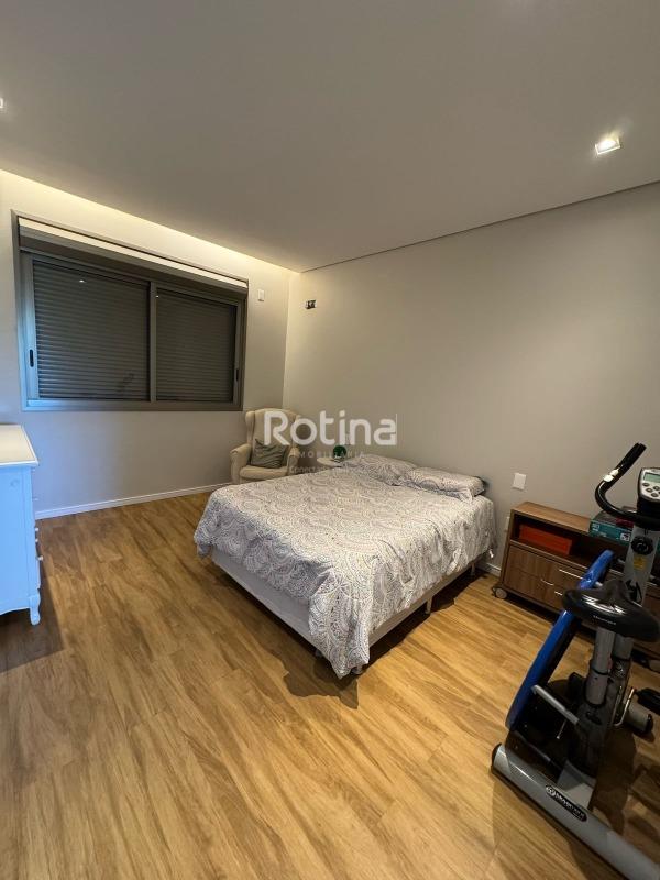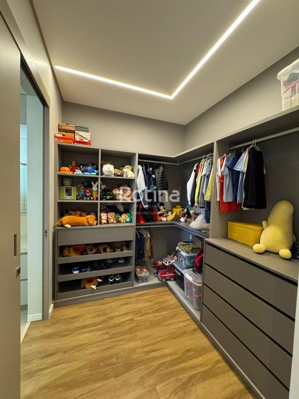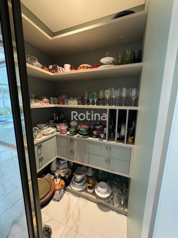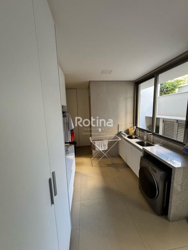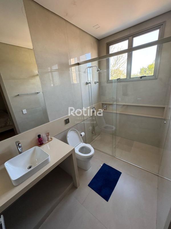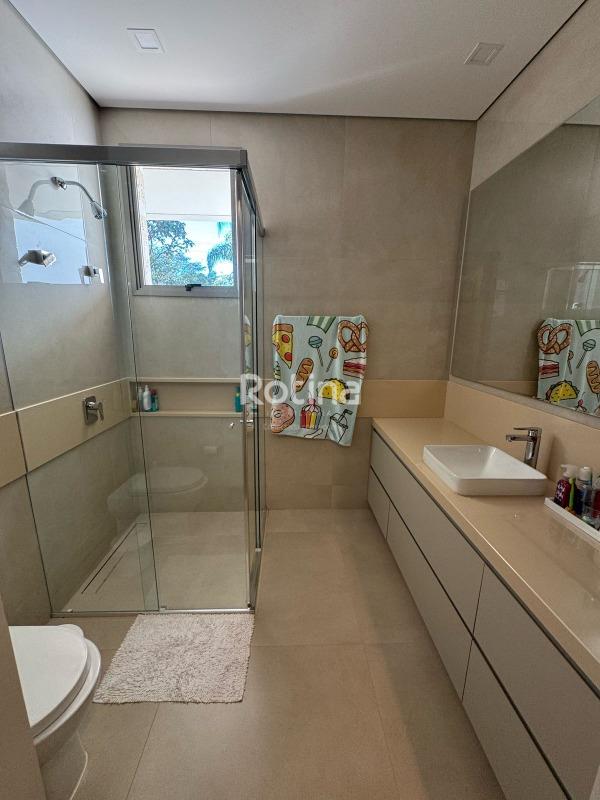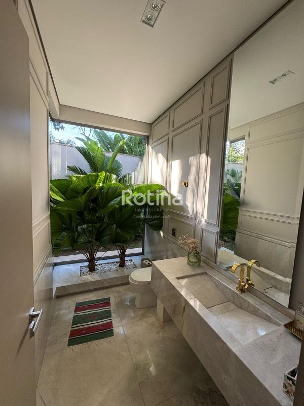 Residência de alto padrão à venda no Condomínio Villa dos Ipês, o mais exclusivo de Uberlândia. Imponente casa de esquina que reúne sofisticação, conforto e tecnologia em um projeto assinado pela renomada arquiteta Deborah Greco. Construída em um terreno de 824,15 m², com 590,10 m² de área construída, o imóvel é distribuído em dois pavimentos, com ambientes amplos, bem iluminados e perfeitamente integrados. São 4 suítes com persianas automatizadas, sendo uma suíte master com amplo closet e jacuzzi, além de outra suíte com closet totalmente montado. A residência conta ainda com lavabo, escritório com possibilidade de conversão em quarto, home theater e cozinha independente equipada com louceiro, despensa e área de serviço completa, além de banheiro para funcionária. A área de lazer é um dos grandes diferenciais, com espaço gourmet sofisticado equipado com parrilla, sistema de som embutido, ar-condicionado dutado/linear, lavatório e dois banheiros/vestiários masculino e feminino, sendo o feminino com chuveiro. A área externa dispõe de piscina e spa preparados para aquecimento, além de um belo paisagismo com som ambiente no jardim. O imóvel possui automação residencial, sistema de irrigação automática Rain Bird, energia fotovoltaica com microinversores e preparação para elevador, oferecendo máxima praticidade, eficiência energética e conforto. Uma residência única, ideal para quem busca exclusividade, alto padrão construtivo e qualidade de vida em um dos endereços mais valorizados da cidade.