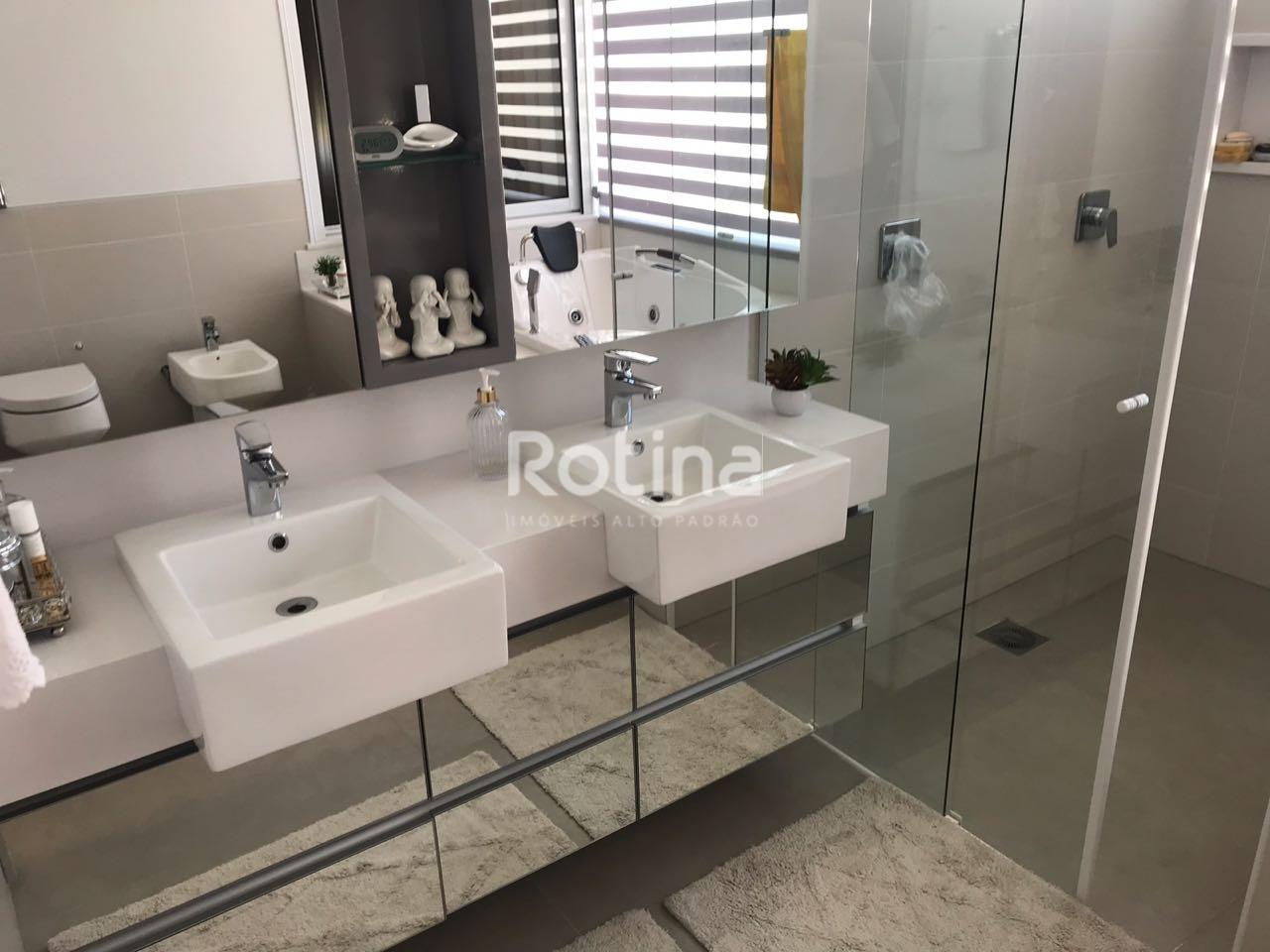 Casa decorada com 400m² de área construída em terreno de 600m². O imóvel possui 4 suítes, sendo a suíte máster com banheira de hidromassagem, closet e armários planejados. Conta com 6 banheiros, hall de entrada, salas de estar e jantar, home theater, escritório e lavabo. A cozinha possui bancada em ilha e despensa, além de área de serviço e dependência completa de empregada. A área de lazer dispõe de espaço gourmet com churrasqueira, ducha, piscina e hidromassagem. Possui ainda janelas e cortinas automatizadas, portas com pé-direito elevado, porcelanato polido, granito marrom café, rodapé embutido e 7 vagas de garagem, sendo 3 cobertas. Acabamento de excelente qualidade, com opção de venda decorada ou sem decoração.